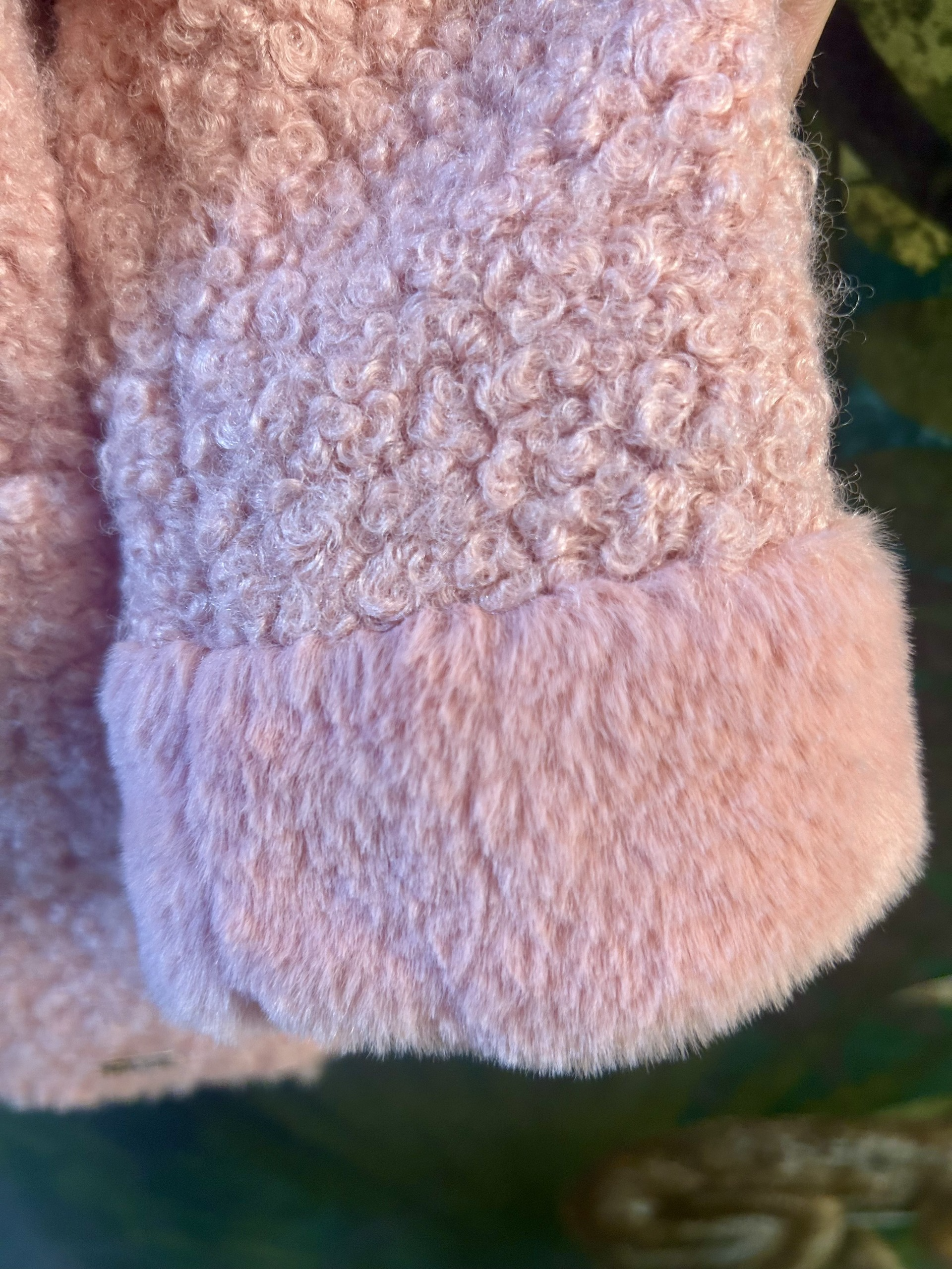 Un capo raffinato e intramontabile per le piccole principesse. Questo cappottino Mayoral in bouclé rosa pastello unisce stile e comfort: la lavorazione ricciolina si abbina ai dettagli in eco-pelliccia ultra soft su cappuccio e polsini, regalando un tocco elegante e avvolgente. Il fiocchetto sul davanti aggiunge una nota romantica, mentre le taschine rendono il capo pratico e versatile.