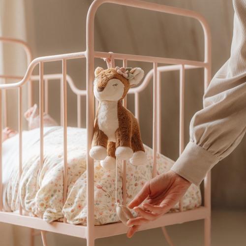 Questo morbido cerbiatto addormentato accompagna il tuo bimbo in un mondo da sogno, fatto di tenerezza, musica e immaginazione.