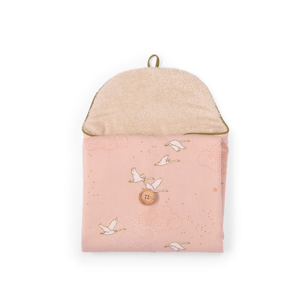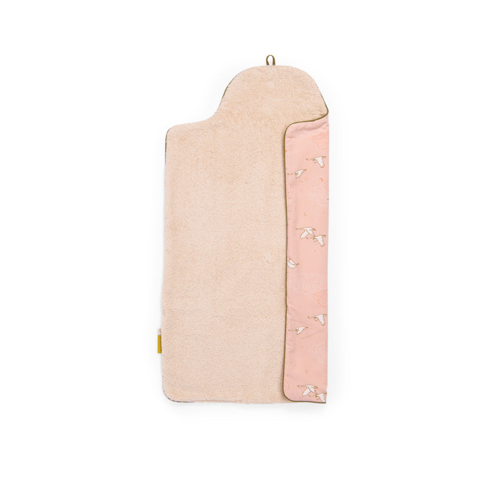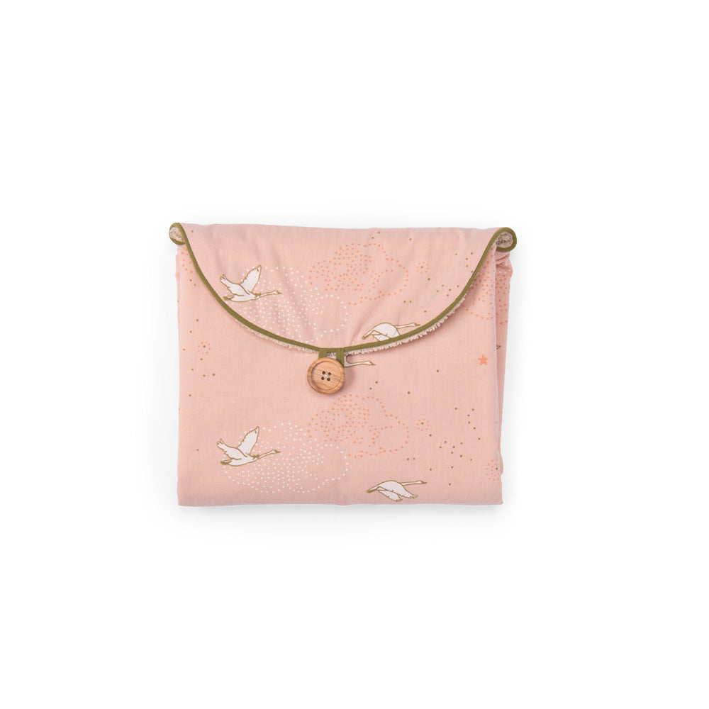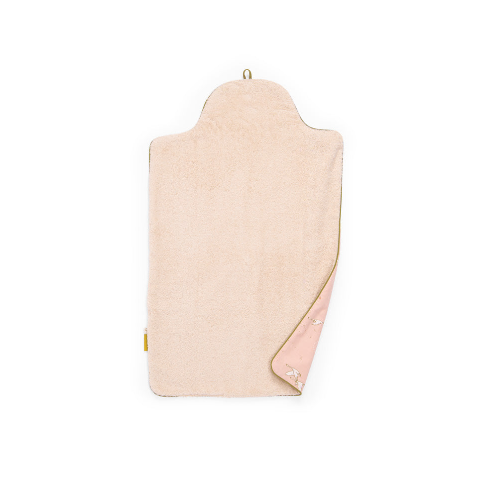 L’interno in spugna assorbente offre la massima comodità al bambino durante il cambio. Si chiude facilmente con un bottone in legno e può essere riposto senza ingombro nella borsa cambio o nello zaino.