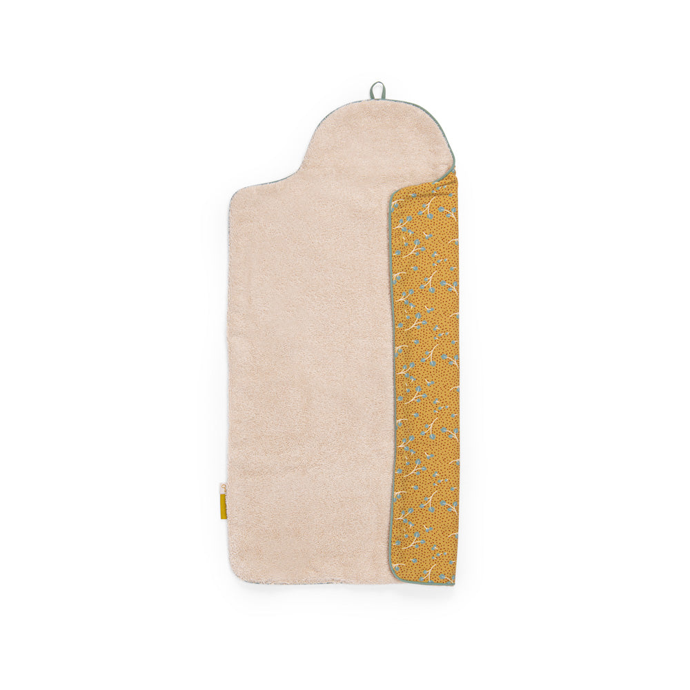 L’interno in spugna morbida e assorbente assicura comodità e protezione, mentre la chiusura con bottone in legno lo rende pratico da aprire e richiudere in un attimo. Si ripiega facilmente e occupa pochissimo spazio, perfetto da portare nella borsa cambio o nello zaino.
