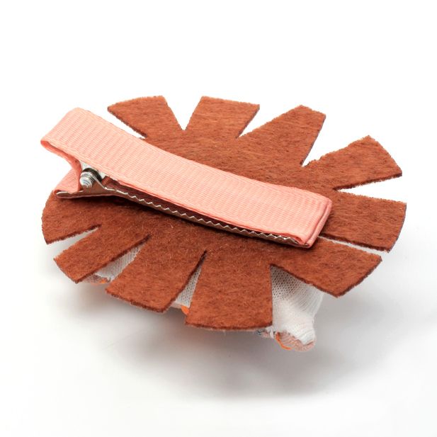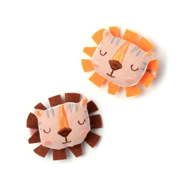 Questo dolcissimo fermaglio con motivo testa di leone addormentato, con morbida criniera in feltro, aggiunge un tocco tenero e allegro a qualsiasi look.