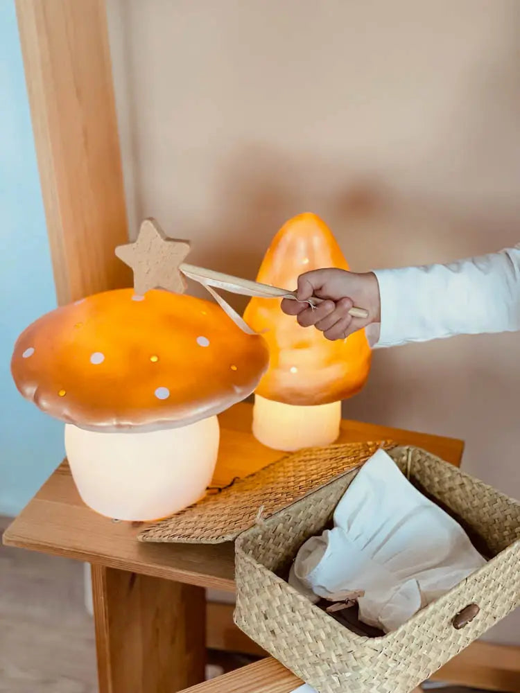 Trasforma ogni angolo in un piccolo bosco incantato con questa dolce lampada a forma di fungo. Le sue linee morbide e il cappello con pois bianchi portano un'atmosfera calda e fiabesca, perfetta per creare un angolo sereno e accogliente.