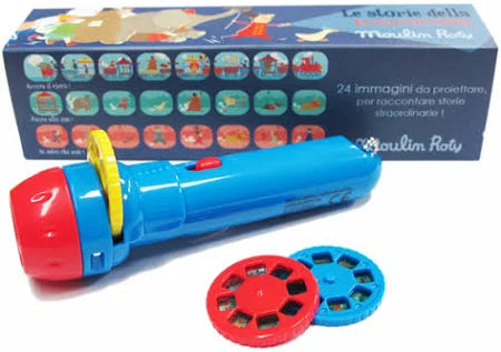 Accendi la fantasia dei bambini con questa meravigliosa torcia-proiettore Moulin Roty, che trasforma la buonanotte in un momento di stupore e incanto.