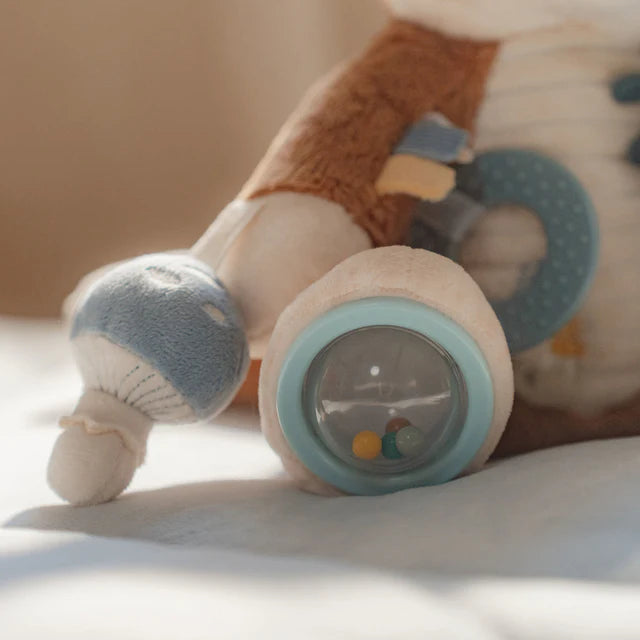 Il Peluche Multiattività Volpe della collezione Forest Friends è pensato per i più piccoli: un morbido amico pieno di dettagli da scoprire, come etichette da toccare, specchietti, suoni fruscianti e piccoli sonagli.