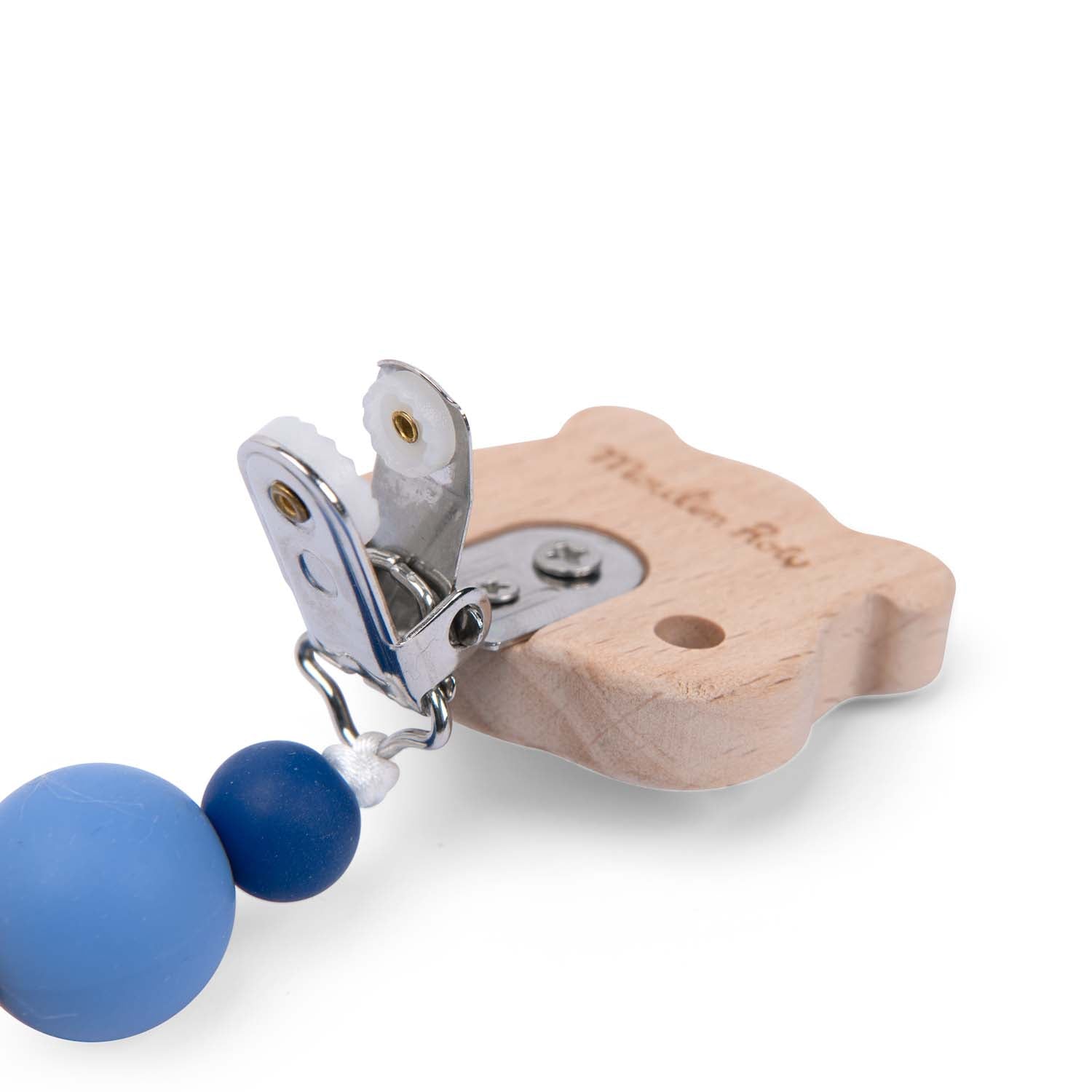 Il porta ciuccio Puce & Pilou è realizzato in legno e silicone morbido, con dolci perline colorate e una clip sicura che tiene il ciuccio sempre vicino.