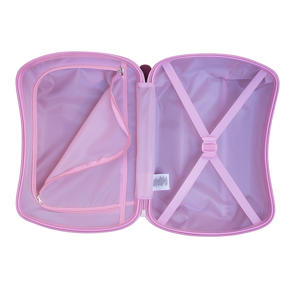 Dotato di ruote robuste, maniglia e tracolla regolabile, offre un interno spazioso con cinghie elastiche e tasca con zip. Ideale per bambini dai 3 ai 7 anni, rende ogni viaggio un gioco allegro e indipendente!